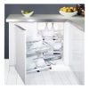 Despenseiro de coluna Kesseböhmer com amortecedor. Disponível em módulos 1200-1600mm com 4 cestos, módulos de 1600-2000mm com 5 cestos ou módulos de 1900-2300mm com 6 cestos. Versão aramada, classic cinza ou style branco. Suporta Carga adicional até 100 kg. Guia SoftstoppPro com 500mm de profundidade, fornecida em separado (abertura com amortecedor e fecho automático com amortecedor).