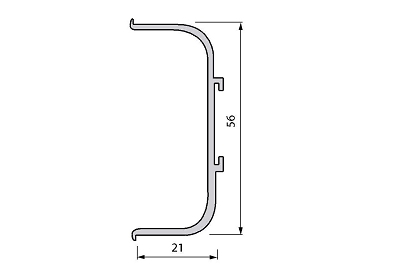 Barras de perfil puxador ”C” oculto para portas de cozinha. Disponível com terminais e suportes para montagem.