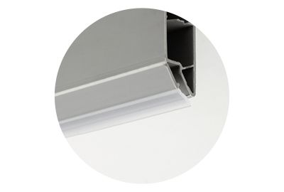 Barras de rodapé de pvc revestido a folha de alumínio CFR com goma de remate inferior para móveis de cozinha. Maleável para transporte.