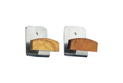 Cabide simples de aparafusar na porta ou parede em inox, com acabamento em lacado ou madeira.