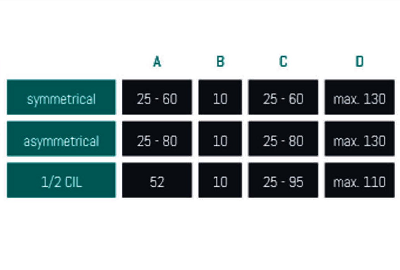 | Dimensões | 50mm, 55mm, 60mm, 65mm, 70mm, 75mm, 80mm, 85mm, 90mm, 95mm, 100mm, 110mm, 120mm, 130mm |