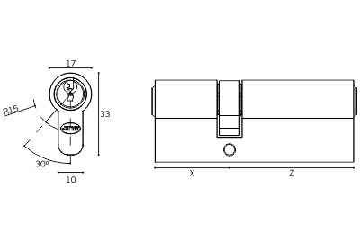 Cilindro europeu S05 com 5 pinos. Fornecido com 3 chaves.
