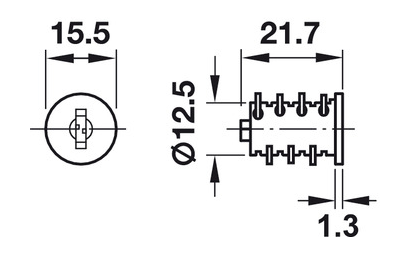 Cilindro para fechadura de mobiliário Symo. Possibilidade de fornecimento de cilindro universal com chaves diferentes indiferenciadas, com chaves iguais ou com mestragem MK1, MK2 ou MK3.