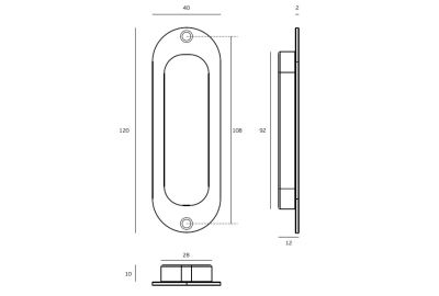 Concha de embutir oval com fixação à vista para portas de correr interiores ou armários.