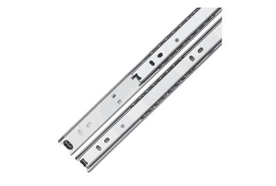 Corrediças de esferas com 27mm de altura e extracção parcial. Suporta até 25kg de peso.