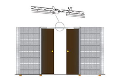 Estrutura metálica modelo duplo encontro. 1 estrutura metálica modelo duplo encontro composta por: 2 estruturas metálicas modelo único CFR +2 barras distanciadoras +1 kit união. Peso máximo por porta: 80 kg.