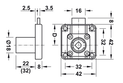 Fechadura para mobiliário Symo esquerda/direita para aplicação sobreposta. Lingueta de bloqueio curta. T/B 25mm. O cilindro tem 22mm de comprimento e 18mm de espessura. Cilindro amovível fornecido em separado bem como todos os acessórios. Possibilidade de fazer mestragem.