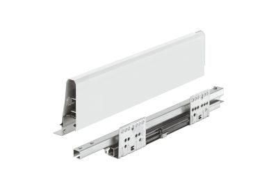 Lateral de gaveta de cozinha Matrix Box S35 com amortecedor, de extração total e capacidade de carga de 35kg. Disponível em 2 alturas, 84mm e 120mm e em 3 cores, branco, cinzento e antracite.