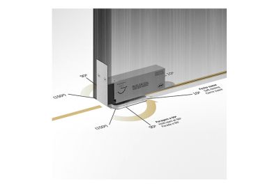 Pivot hidráulico completo para porta de batente ou vai-vem. Largura máxima da porta 1000mm, espessura mínima 40mm. Carga máxima 100kg. Duas velocidades de fecho reguláveis por válvulas. Ajuste +/- 3mm. Aplicável à superfície do pavimento.