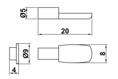 Suporte de prateleira modelo 162. Composto por ilhó para ilharga e patilha para suporte de prateleira.